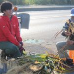 普段ダンサーさんがつけているレイを、久志地域のお花や葉っぱを使って実際に作ります!
