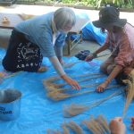 やんばる式と呼ばれる作り方で、三原てぃぐま会の皆さんとゆんたく(おしゃべり)しながら一緒にほうきを作りましょう♬